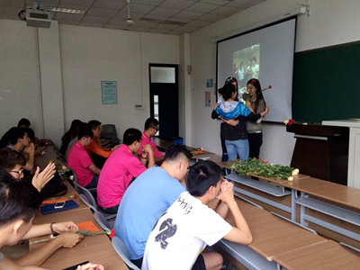 班会由石国卿主持,以“对不起 谢谢你”为主题。石国卿首先带领同学们观看了四年大学时光的照片秀,引得同学们产生情感共鸣;随后,石国卿拿出为同学们准备的黄玫瑰和康乃馨花束,告诉同学们黄玫瑰的花语是“对不起”,康乃馨的花语是“谢谢你”,他引导同学们回顾一下四年大学生活,想要对谁说一声“对不起”和“谢谢你”,就选一支鲜花送给TA;同学们纷纷上前,将鲜花送给班内同学,或表达对舍友照顾、包容和理解的感谢,或表达因曾经的摩擦造成的误解的歉意……全班同学真情流露、泪流满面;最后,石国卿总结说:“对不起和谢谢你不仅是这最后一次班会的主题,而且是大家走入社会之前老师送给你们的两件法宝,记得说谢谢你,将让你心怀感恩,记得说对不起,将让你时时记得反省自己,一个懂得感恩和反省的人,将更容易获得人生的幸福!”
