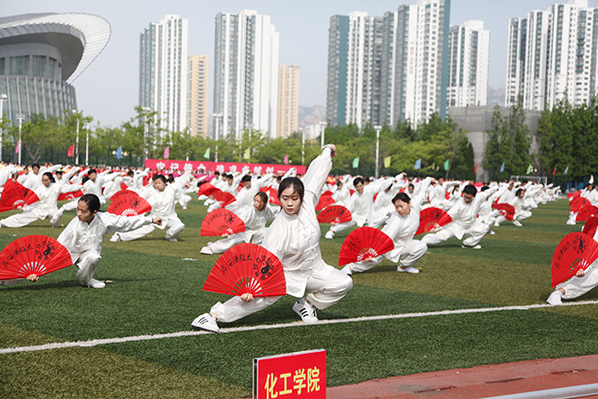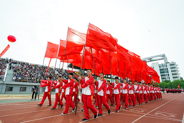 校长郝芳宣布中国石油大学(华东)2018年田径运动会开幕。七色彩烟直冲天际,运动场变成了欢乐的海洋,威风锣鼓表演激情澎湃,教职工广播体操表演整齐划一,大学生太极扇表演刚柔并济,开幕表演异彩纷呈,观众们的欢呼声此起彼伏。