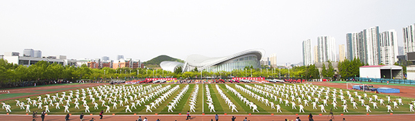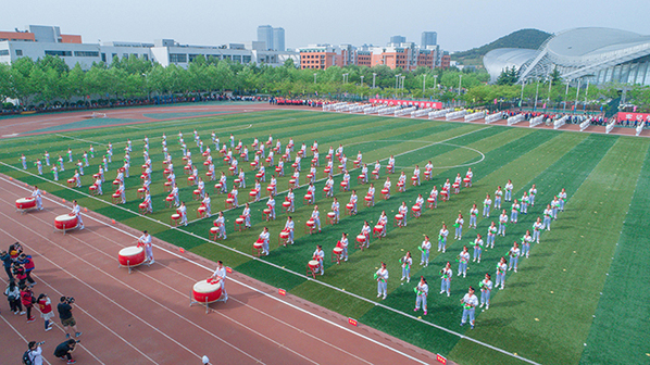 五月的天空,清澈明亮,唐岛湾畔,惠风和畅。18日,中国石油大学(华东)2018年田径运动会盛大开幕。