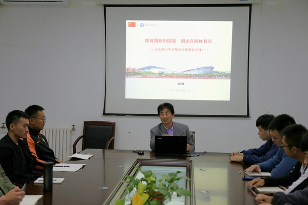 按照“不忘初心、牢记使命”主题教育工作安排,10月17日,部主任王锋在体育馆会议室以“体育强则中国强、国运兴则体育兴”为主题为全体研究生上专题党课。