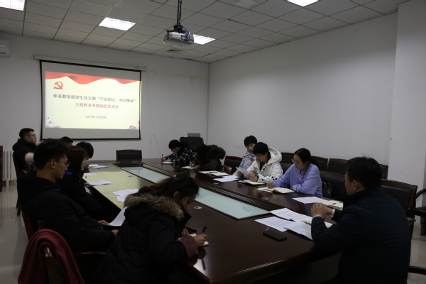 12月8日下午,betway88西汉姆联学生党支部“不忘初心、牢记使命”主题教育专题组织生活会在体育馆会议室召开。会议由部团委书记姜庆林主持,部党委副书记付罡和全体学生党员参加会议。