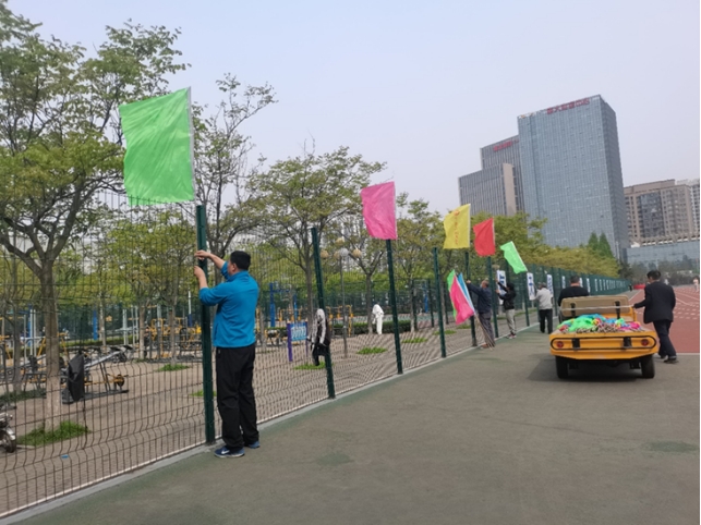体育场馆管理中心把保障此次运动会作为近期工作的重中之重,对场地、设施等相关问题进行了专题研究,明确了各岗位工作人员和责任,切实加强了对场馆保障工作的组织领导。运动会前夕场馆中心多次组织工作人员对运动会重点场所和基础设施进行实地检查,全面排查和解决了各类安全隐患,并对田径场塑胶跑道进行了修缮,重新施划了跑道标识标线。运动会开幕前在田径场主席台布设了背景,并在场馆四周悬挂了气球、彩旗和横幅,在田径场入口布置了拱门,营造烘托了热烈的运动会氛围。