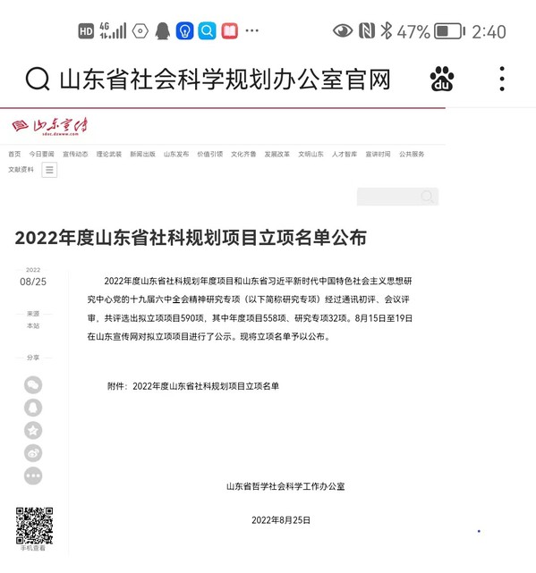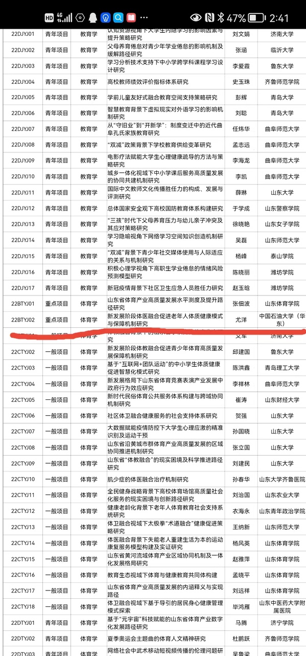 2022年8月25日,山东省哲学社会科学工作办公室公布了2022年度山东省社科规划项目立项名单,我部尤洋副教授主持申报的《新发展阶段体医融合促进老年人体质健康模式与保障机制研究》获批山东省社科规划重点项目。