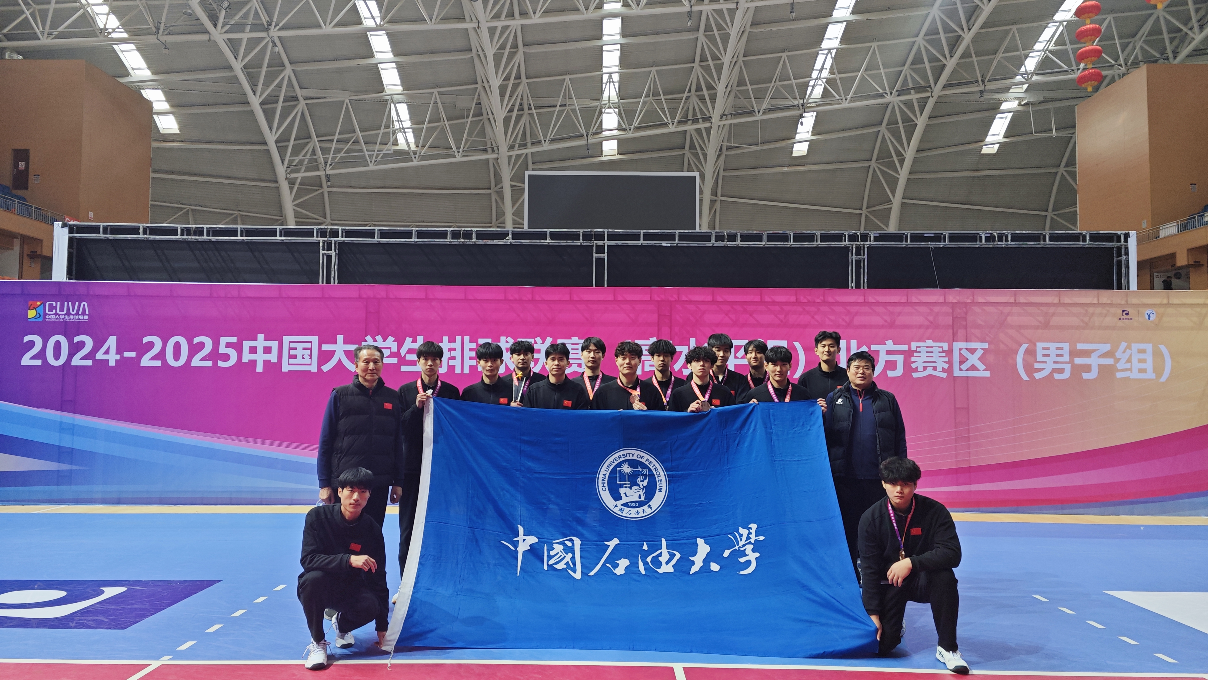 近日,2024-2025中国大学生排球联赛(高水平组)北方赛区(男子组)比赛在宁夏青铜峡市举行。我校高水平男子排球队由主教练邸安和、助理教练韩文带队参加,经过11天的激烈角逐最终获得季军。