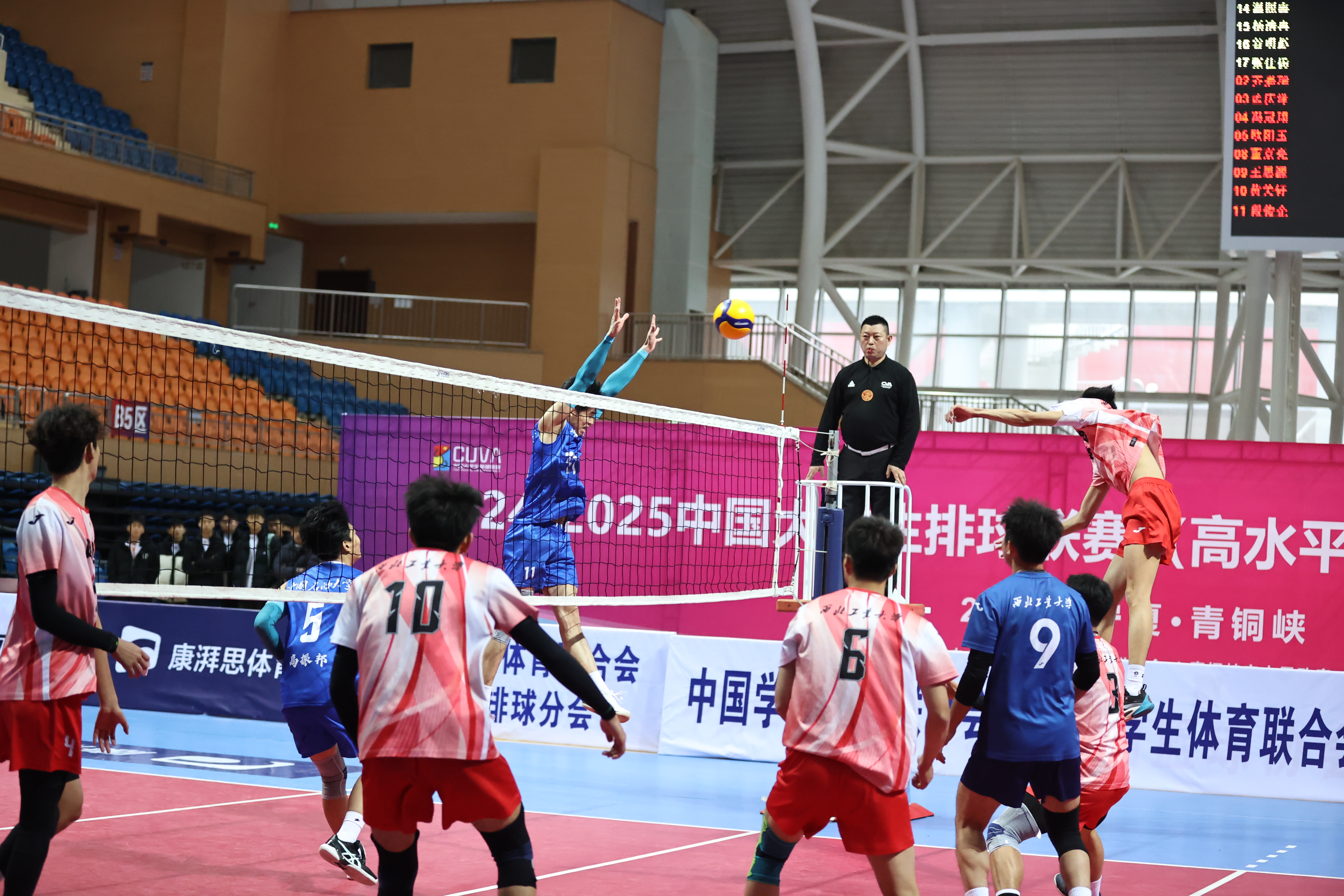 我校高水平男排队员在比赛中