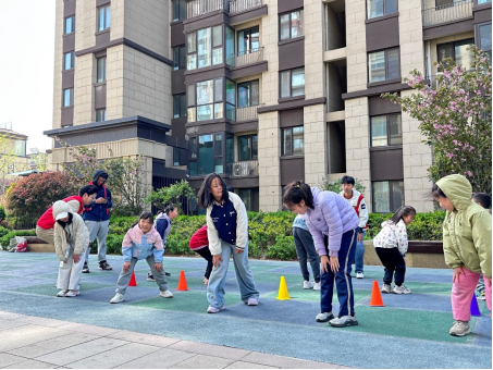 活动伊始,由betway88西汉姆联学生志愿者带领10余名社区儿童进行慢跑热身,让身体逐渐进入运动状态,并指导社区儿童完成静态拉伸,充分活动关节、放松肌肉,为后续训练打下基础。在“方形跑”环节,孩子们需要围绕方形区域,交替完成竖向行进间小步跑和横向跨步动作,志愿者们一边示范标准动作,一边耐心纠正小朋友们的姿势,鼓励大家保持节奏、大胆跨步,锻炼了孩子们跑动时的协调性,激活了腿部肌肉和髋关节灵活性。“听口令抢锥形桶”环节中,志愿者组织孩子们两人一组背对站立,当志愿者随机喊出数字“1”时,两人迅速转身抢夺锥形桶,五轮紧张刺激的比拼让孩子们在欢声笑语中提升了反应速度和身体控制能力。最后,在“红绿灯”游戏环节,志愿者手持红绿警示牌,举起绿色警示牌时示意小朋友们向前快跑,举起红色警示牌则立即后退,通过信号变化,孩子们反复练习启动、减速和方向控制,脚下协调性得到有效训练。活动结束后,家长们纷纷表示,这种寓教于乐的体适能课程既锻炼了孩子们的身体,又培养了运动兴趣。
