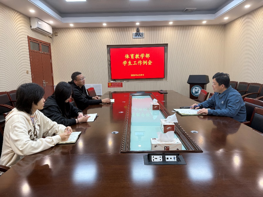 随后,卢志同对下一阶段主要工作进行安排:一是要时刻关注学生动态,把安全稳定工作放到首位,发挥好学生干部、学生党员的信息员、联络员作用,做好五一假期离校、留校、出行、网络等安全教育;二是就业攻坚、强抓学风训风建设,“一对一”、“点对点”帮扶未就业学生,同时做好家校和导师沟通,全员、全过程促进就业;三是推进心理健康主题教育活动有序开展,做好统筹安排与宣传报道。最后卢志同强调,学生工作组要立足体育特色,守正创新、真抓实干,加强学生日常管理和教育引导,关爱学生身心健康,树立正能量,共同助力学生成长成才。