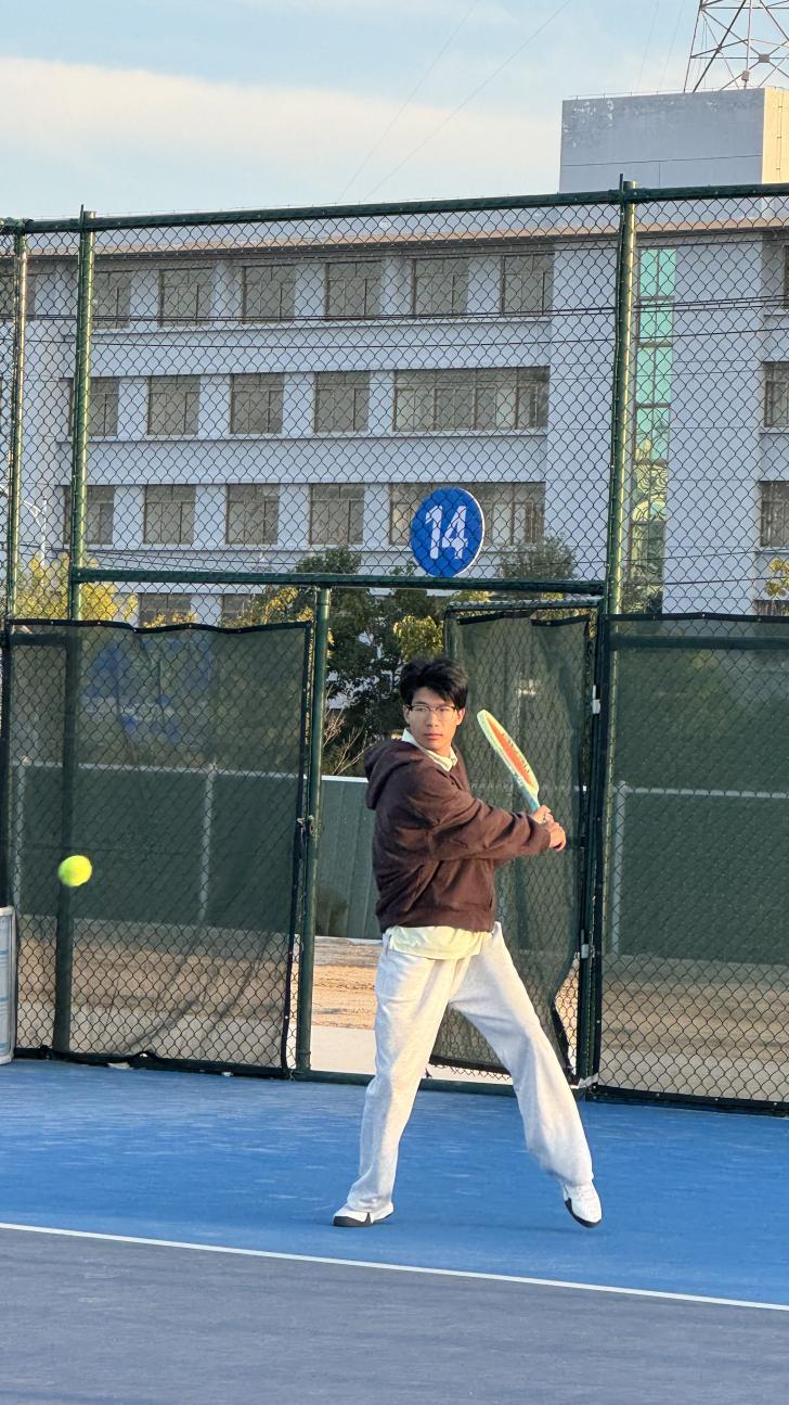 男子团体小组赛中,我校男队遭遇劲敌山东大学(威海)。首战魏晓康率先破发1:0领先,对手随即调整战术连下5局;魏晓康专注发球局追至2:5,终以2-6憾负首局。随后张荣诗顶住压力大比分取胜,扳回一局并延续比赛悬念。双打环节,朱冉/魏晓康组合总结失利经验,专攻对手薄弱点,凭高质量高球与底线对攻以6-2获胜,助力男团以小组第一挺进八强。
