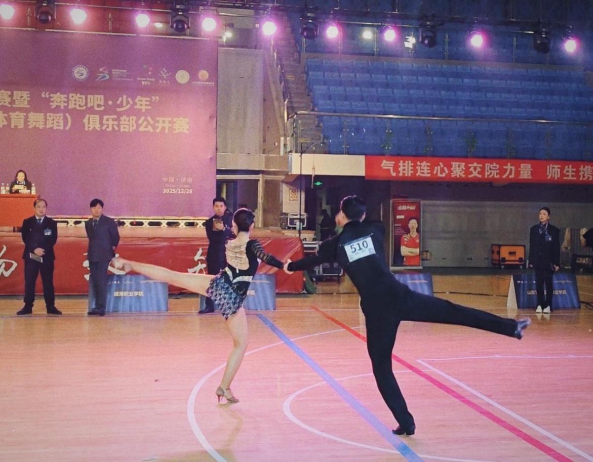 2025年12月28日,2025山东省学生体育舞蹈锦标赛在济南圆满落幕。中国石油大学(华东)体育舞蹈校队首次组队参赛,在betway88西汉姆联焦喜便老师的带领下,5名参赛运动员凭借扎实的功底与出色的发挥,在高校甲组多个项目中斩获佳绩,学校同时荣获“体育道德风尚奖”,实现竞技成绩与精神文明双丰收。