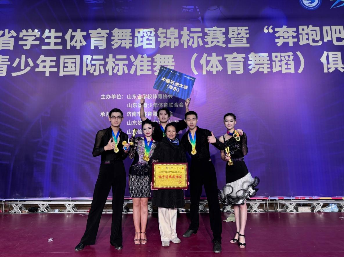 2025年12月28日,2025山东省学生体育舞蹈锦标赛在济南圆满落幕。中国石油大学(华东)体育舞蹈校队首次组队参赛,在betway88西汉姆联焦喜便老师的带领下,5名参赛运动员凭借扎实的功底与出色的发挥,在高校甲组多个项目中斩获佳绩,学校同时荣获“体育道德风尚奖”,实现竞技成绩与精神文明双丰收。