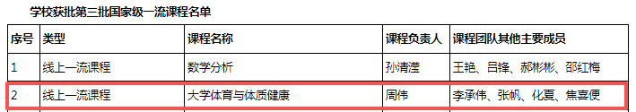 12月,教育部办公厅公布第三批国家级一流本科课程认定结果,周伟教授团队负责的公共体育课程《大学体育与体质健康》成功入选国家级线上一流本科课程,这也是我部首次入选国家级一流本科课程。该课程于2019年在山东省高校联盟智慧树平台正式上线。截至目前,累计选修人数近17万,覆盖全国148所高校,先后荣获2020年山东省高校联盟优秀共享课程二等奖、2022年智慧树“十万金课”等荣誉。