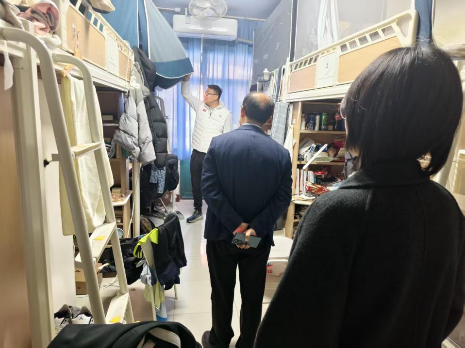 李广磊与学生面对面交流,详细了解学生实际困难与相关诉求,并进行宿舍安全卫生教育,引导学生提高安全意识,培养良好的卫生习惯。